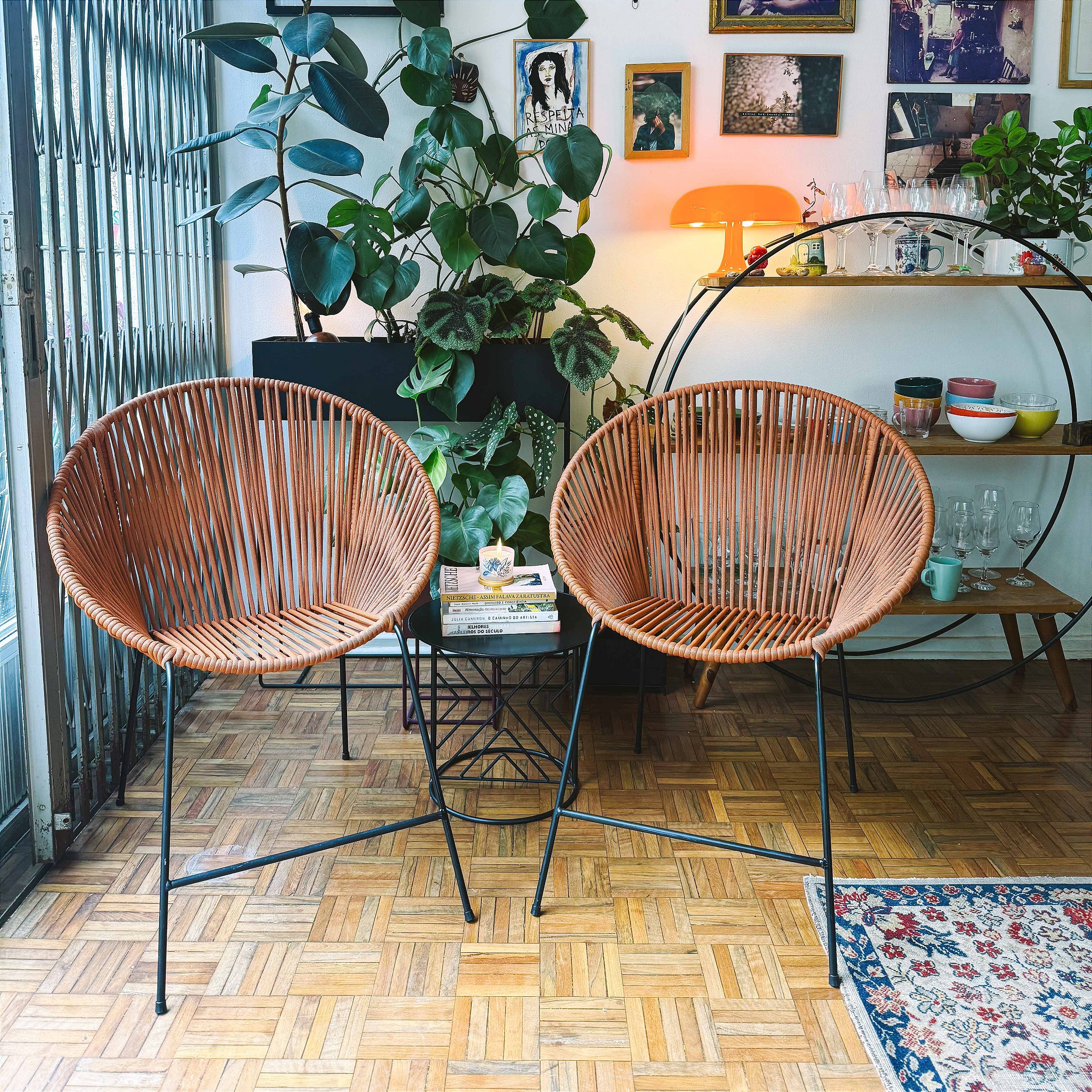 Cadeira em ferro maciço, galvanizado e pintura automotiva com trama em corda naval (fio PP com anti UV).